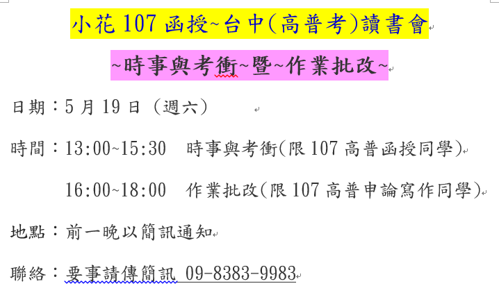 107高普函授-申論寫作班-作業更改-17:00~18:00